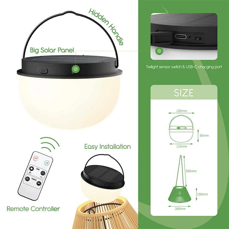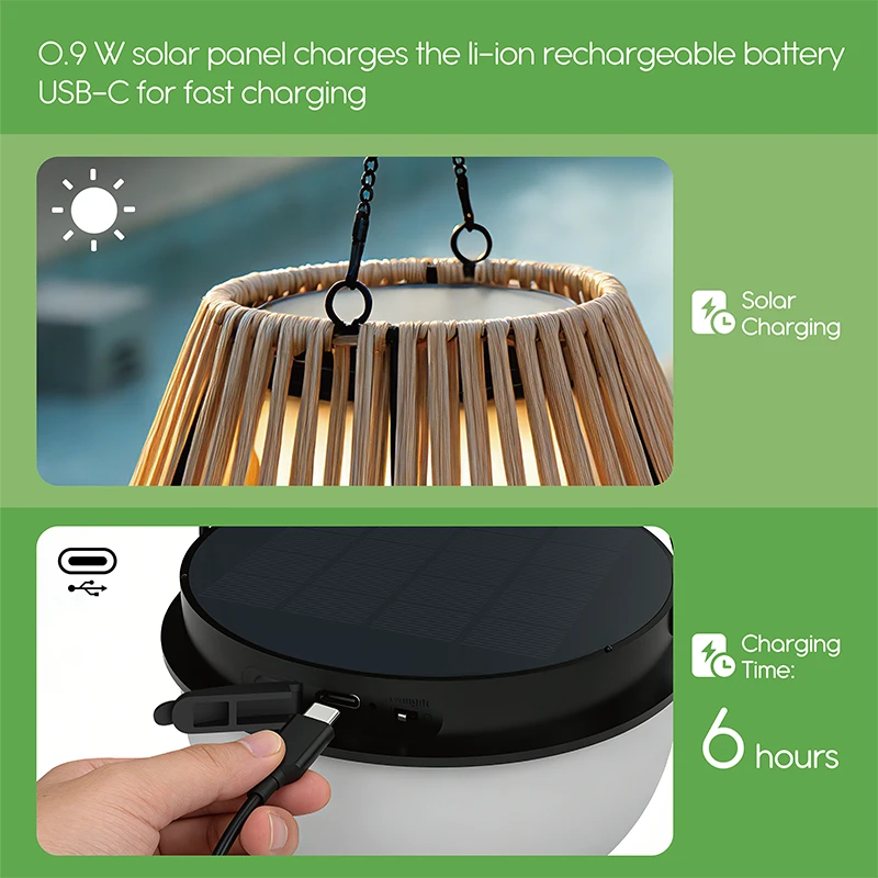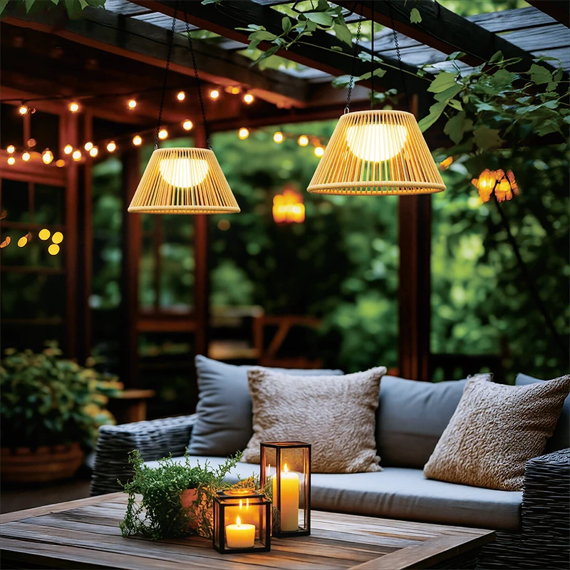 Unyielding against the harshest elements—whether torrential rain or relentless snow—these pendant lights are fortified by durable IP44 water resistance, dual 1800mAh rechargeable batteries, and integrated 0.9W solar panels. Each package arrives as a complete ensemble: a hanging pendant, elegant rattan shade, and a versatile portable light head featuring intuitive controls and the convenience of USB-C charging.