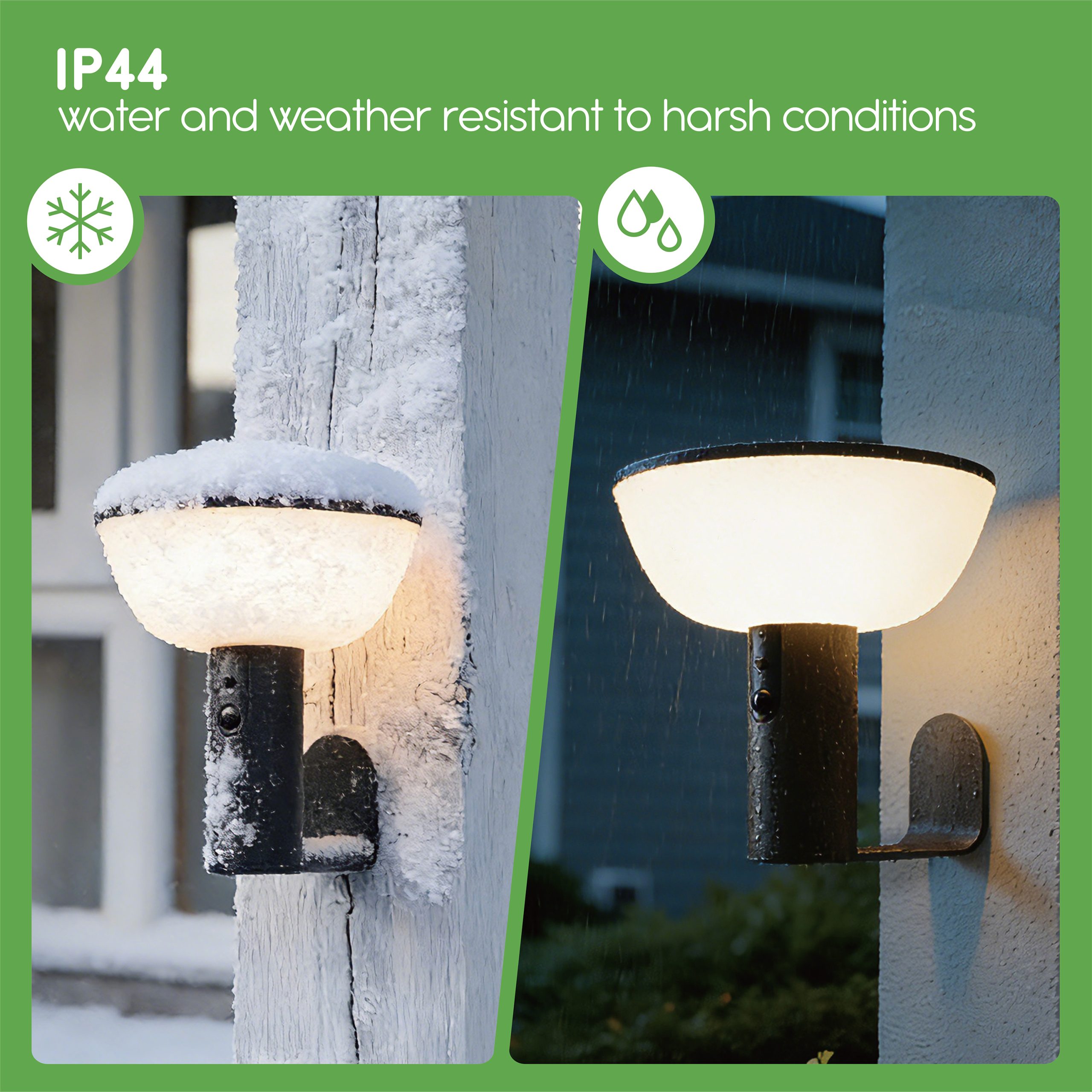 • LIGHTING SPECS:  95+ CRI | 2700K CCT | IP44 weather resistant | 45lm low, 300lm high brightness